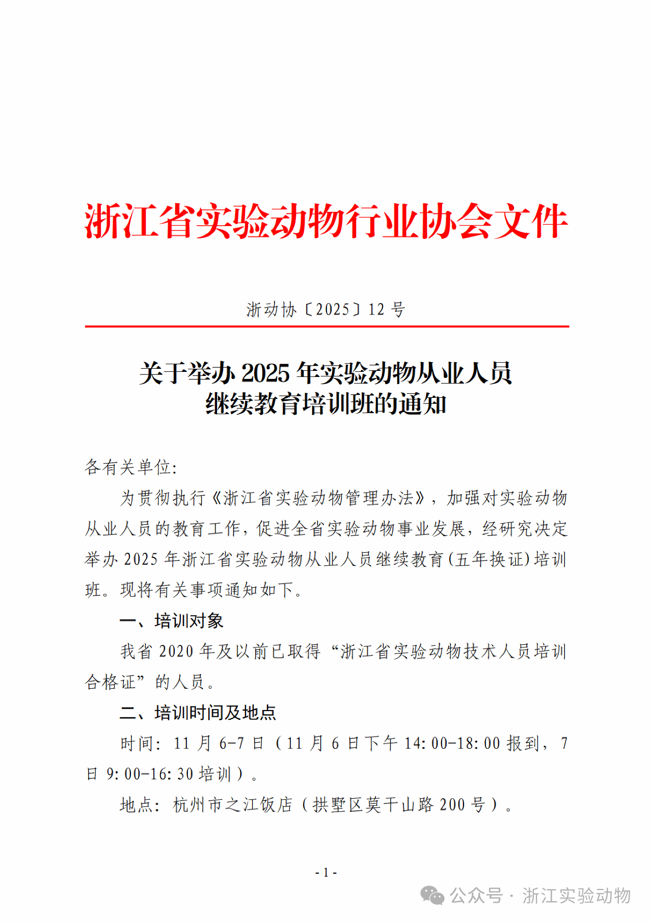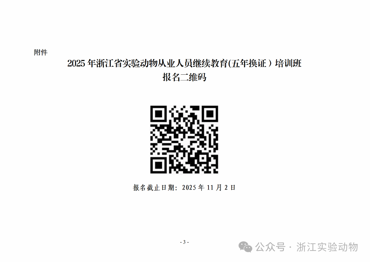 2025年浙江省实验动物从业人员继续教育(五年换证)培训班